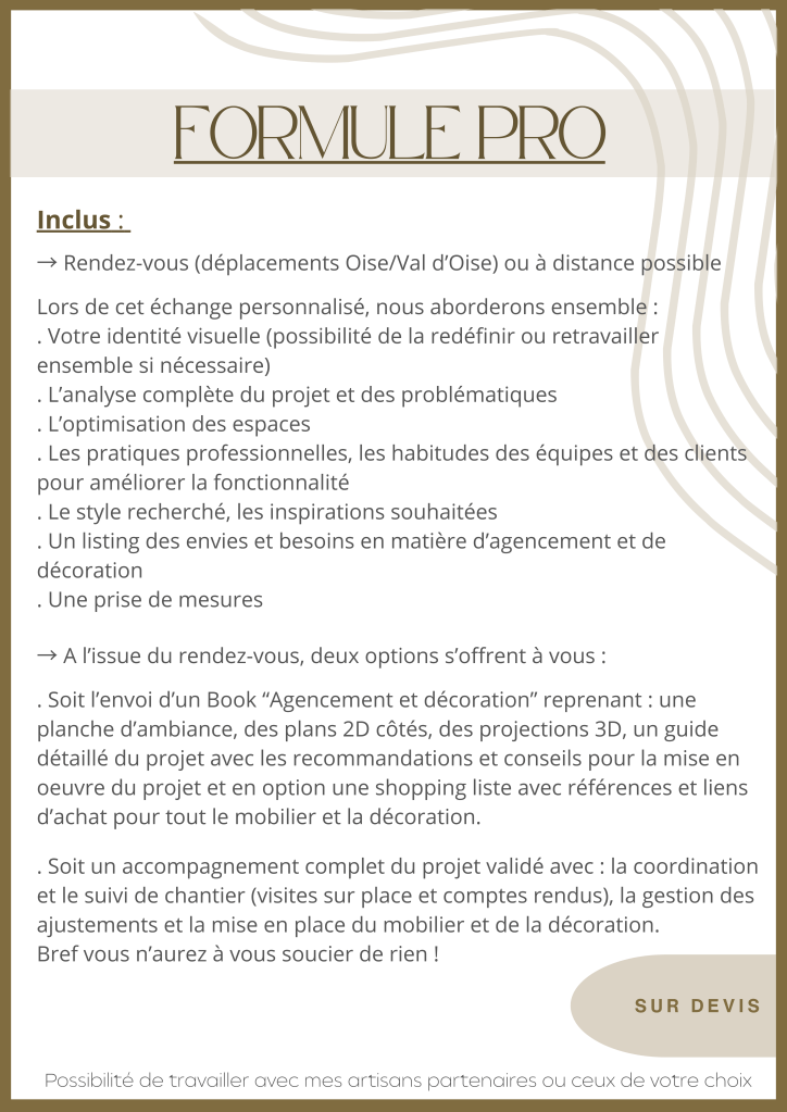 Je peux également vous mettre en relation gratuitement, avec mes artisans partenaires pour des demandes de devis, afin de vous accompagner dans la réalisation de votre projet.